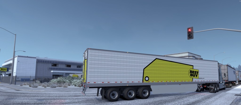 Wir meldeten uns beim Lagerpersonal und forderten unseren Auftrag ab. Nach dem Papierkram konnten wir den Trailer aufsatteln, der auch mit Best Buy Werbung versehen war. „Gut, dass wir eine neutrale Maschine mithaben.“ Grinste Ben. „Ich mag das nicht, wenn wir einen fremden Trailer mit unseren Maschinen ziehen.“ „Warum?“ „Erstens sieht es manchmal blöd aus und zweitens kommen so schonmal Gerüchte auf, die nicht stimmen.“ „Was denn für Gerüchte?“ „Was weiß ich. In diesem Fall vielleicht, dass Walmart und Best Buy fusionieren.“ „Ach so was.“ „Genau. Wir verkaufen denen was, die verkaufen uns was. Siehst du ja heute. Das hat aber nichts mit Fusion zu tun. Die ganzen Handelskonzerne handeln eben auch untereinander.“ Ich nickte.