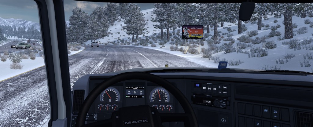 Wir fuhren dann Bobtail zum Außenlager. Dort fuhren wir direkt vor Tor 5 und sattelten den Trailer auf. Beim Schließen der Türen am Trailer sah ich dann, dass Ben Recht hatte. Der Großteil der Ladung bestand aus Paletten mit Papier. Bei der PTI des Trailers wunderte ich mich über die dritte Achse des Trailers. „Wahrscheinlich ein Trailer aus Kanada.“ Sagte Ben, was sich am Kennzeichen bestätigte. „Sind wir dann nicht zu schwer?“ „Muss nicht sein. Ist ja kein Reefer. Wenn wir die US-50 nehmen, haben wir eh keine Waage auf der Strecke.“ „Okay.“ Es war dann neun Uhr, als wir uns endlich auf den Weg machen konnten.