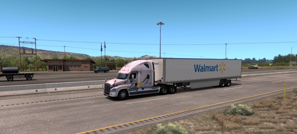 Kurz vor Zehn erreichte ich dann Salmon. Die Stadt wurde nach dem Fluss benannt und dieser vermutlich nach seinem häufigsten Bewohner. (Salmon=Lachs) An der größten Kreuzung des Städtchens durfte ich dann geradeaus fahren. Dann fuhr ich quasi direkt auf den Walmart Discount Store zu. ORBCOMM hatte mir inzwischen Rampe 1 zugewiesen. Also rangierte ich den Trailer an die entsprechende Rampe. Mein Anschluss kam dann aber nicht direkt von diesem Supermarkt. Im System stand nun folgender Auftrag:
