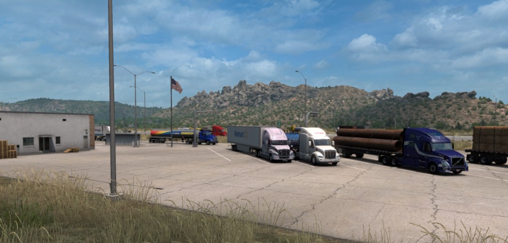 Es ging durch den Ort und an dem Sägewerk vorbei, an dem ich vor einigen Wochen die Leerpaletten angeliefert hatte. Ich wechselte auf die US-395 N in Richtung Burns und verließ den Ort. Anschließend fuhr ich auf das Gelände, dass sich dort eine Werkstatt und eine Tankstelle teilten. Ich fragte in der Werkstatt kurz nach, ob ich hier über Nacht stehen bleiben konnte. Das wurde mir erlaubt, also parkte ich den Lastzug so, dass er keinen behinderte. Dann machte ich Feierabend.