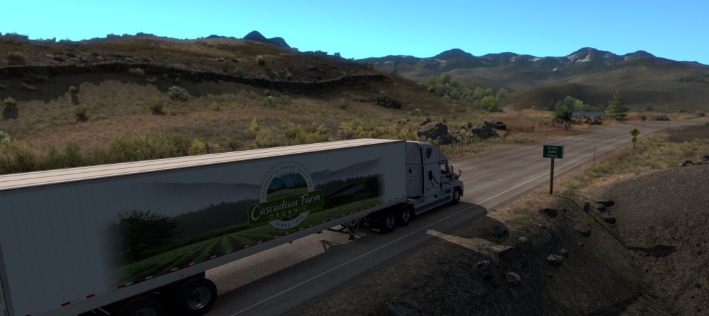 Es ging zurück zur US-93 N, die nun in Richtung Missoula ausgeschildert war. Dann ging es aus Salmon heraus. Kurz darauf war ich bereits am Ziel. Die Farm lag linkerhand direkt am Highway. Hier musste ich dann wieder mal Kontakt zu den Leuten aufnehmen. Mit Schutzmaske stieg ich aus und ging zu dem Wohnhaus. Der Farmer hatte mich aber schon gesehen. „Guten Morgen.“ Grüßte ich. „Hallo. Sollst du euren Trailer für Boise abholen?“ „Ganz genau.“ „Geradeaus und hinter dem Getreidesilo rechts steht der Trailer. Papier sind, wie gewünscht, an der Ware.“ „Okay, danke.“ Ich stieg wieder ein und fuhr zu dem Trailer. Es war einer unserer 53 Fuß Reefer. Nachdem ich aufgesattelt und die PTI erledigt hatte, machte ich mich wieder auf den Weg.