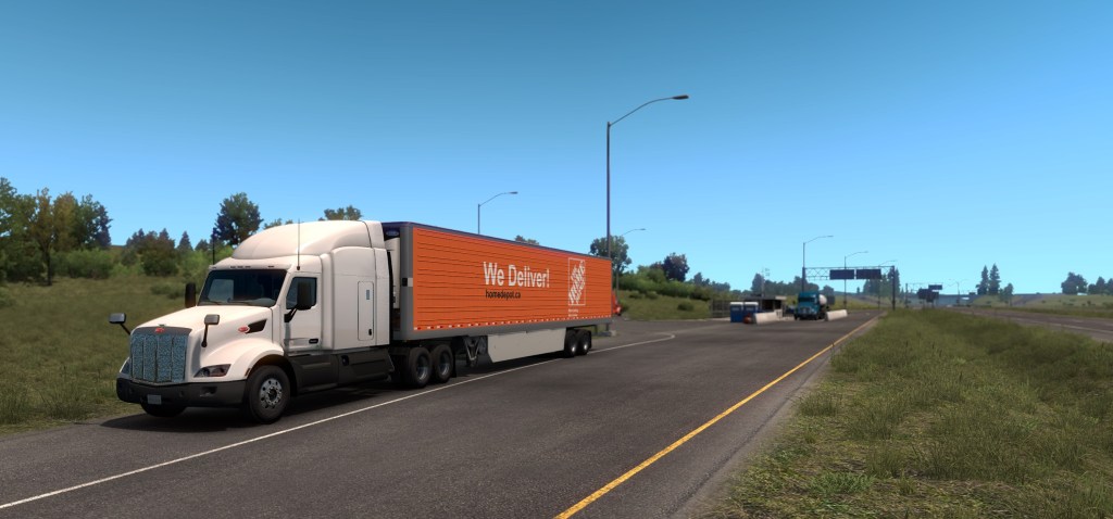 Bald war die Grenze zu Washington erreicht. An der entsprechenden Weigh Station durfte ich dann mal wieder mein Gewicht prüfen lassen. Mit dem Reefer und fast 42.000 Pfund Ladung, außerdem noch mit recht vollen Tanks war ich gespannt. 78,774 lb stand schließlich auf der Anzeige. Damit konnte ich gut leben. Ohne Beschriftung auf der Zugmaschine gab es auch keine Fragen, warum man als Fahrer von Walmart Transportation einen Trailer mit Home Depot Werbung zog. Ich bekam grünes Licht und durfte weiterfahren. Da ich aber noch keine Pause hatte, stellte ich mich an die Seite und absolvierte meine halbe Stunde Pflichtpause.