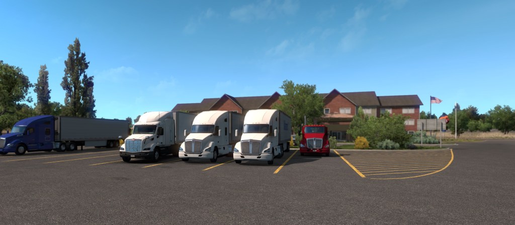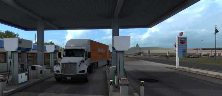 Mit vollen Tanks fuhr ich dann auch zum Pilot Travel Center rüber. Zu meiner Überraschung stand Jim dort nicht alleine. John Miller war auch dort. Auch er hatte eine der Kenworth Maschinen bekommen. Ich parkte meinen Truck und ging zu den beiden.