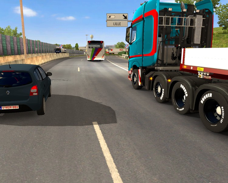 Verladung, Sicherung und das Erstellen der Papiere sind um kurz nach 11:00 Uhr erledigt. Mit verkürzter Ruhezeit passt das also um direkt zu starten. Es geht über die belgische A3, ab Grenzübergang Lichtenbusch dann A44. Ich bin gerade auf die A4 gewechselt als ich sehe wie ein Kollege hinter mir mit seinemroten Actros ins Schlingern gerät und ohne irgendwo einzuschlagen zum stehen kommt. Ich schalte die Warnblinkanlage ein und laufe über den Standstreifen zu ihm.