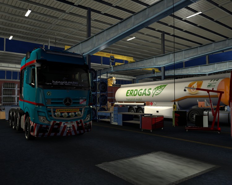 Ich gehe in die Halle und mache das Rolltor auf. Die Zeit bis Fred Stone auftaucht will ich nutzen um den Actros einmal durchzusaugen.