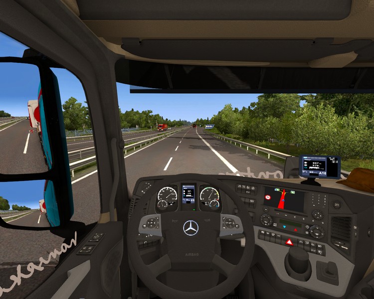 Wir gehen gemeinsam zum Actros. Während ich mit der Abfahrtkontrolle beginne zündet der Bär sich eine Zigarette an.