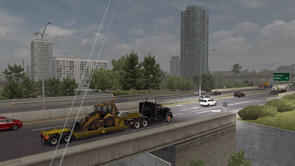 Ich schaffte es noch bis Columbia, SC, bevor mir die Fahrzeit für den Tag ausging. Am nächsten Tag fuhr ich ans Ziel nach Atlanta und bekam von Brian meinen nächsten Auftrag. Der Tieflader wurde entladen und leer zur CAT-Niederlassung gefahren. Dort bekam ich einen quasi identischen. Es ging durch die Berge, mit einem Radbagger sollte ich nach Nashville. Das bedeutete einen kräftigen Anstieg, an dem der alte Mack gut zu kämpfen hatte.