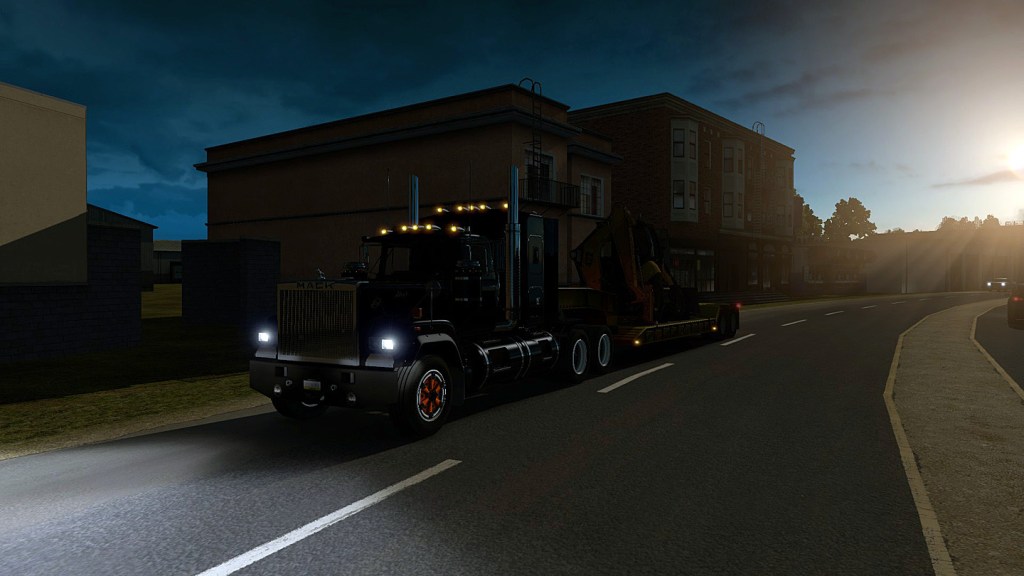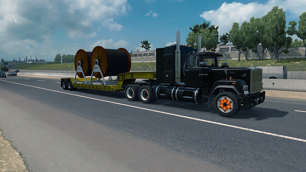 Bald war ich auf dem Weg. Der Superliner zog solche recht schweren Ladungen wirklich besser als gedacht, allerdings war mir das Getriebe ein Bisschen kurz übersetzt. Damals galt in allen Staaten noch 55 für Trucks, heute ging mehr. Und anders als in Europa, wo sich Christian mit so was rum ärgerte, hatten amerikanische Tieflader ganz normale Reifen und konnten entsprechend schneller fahren. Ich machte es also von den Rahmenbedingungen der Aufträge abhängig, wie schnell ich fuhr. Immerhin reichte es, den Markenkollegen mit seinem RD Betonmischer abzuhängen.