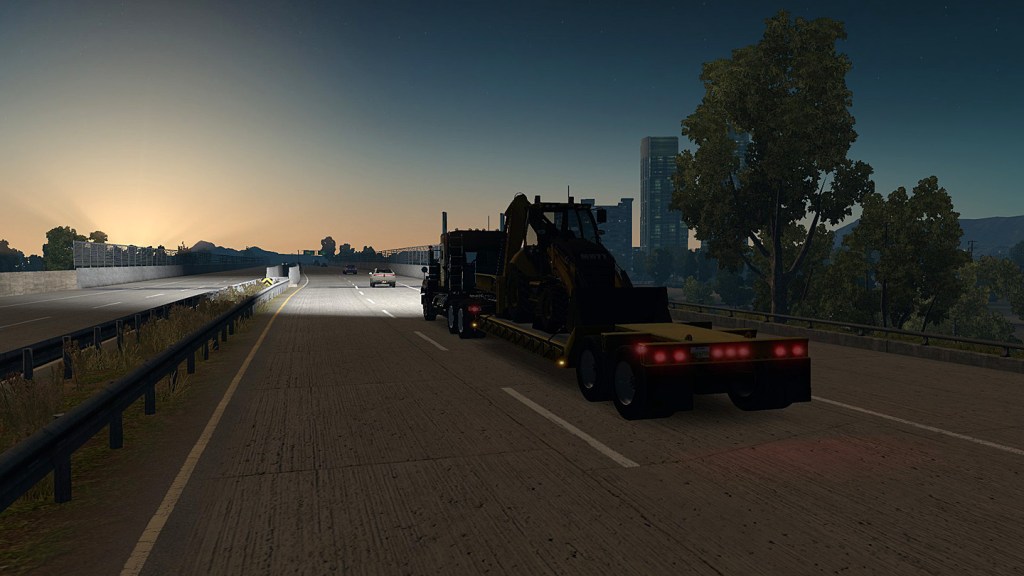 Ich fuhr vom Hof zur Baustelle, wo der Bagger schon auf dem Trailer stand. Ich prüfte, dass die Ladungssicherung korrekt war und dass die Bremse angelegt war. Beides hatte man mir auch bei meinem Besuch in Erie erklärt. Außerdem hatte ich seinerzeit einen Schnellkurs bekommen, wie man die gängigen Fahrzeuge fährt und lädt, denn manchmal musste ich das auch selber machen.