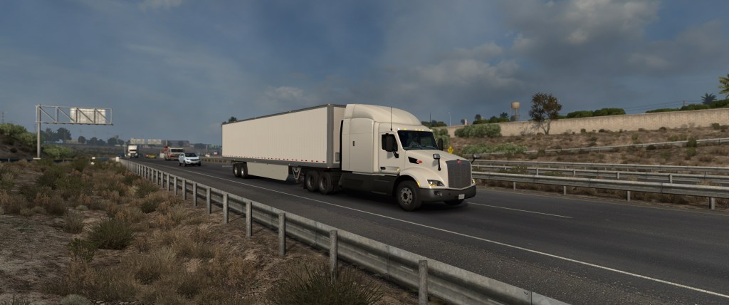 Eine Stunde später hatte ich dann aber Pech. Normal hatte ich mir die Burnt Well Rest Area als Tagesziel ausgesucht. Dann verschätzte ich mich aber. Um nicht zu viel Zeit zu brauchen, hatte ich noch begonnen einen anderen Truck zu überholen. Leider wurde der Kollege dann auch wieder schneller, so dass mein Überholmanöver zu lange dauerte. Da es hinter mir auch voll war, wollte ich auch nicht stark abbremsen, um vor der Ausfahrt zur Rest Area nach rechts zu kommen. Als ich dann endlich vorbei war, hatte ich keine Chance mehr, auf die Rest Area zu kommen, ohne einen Unfall zu provozieren. Ich musste also weiterfahren.