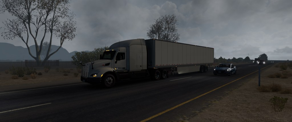 An Tor 5 erwartete mich dann eine Überraschung, die mir bei dem Gewicht aber dann klar wurde. „Sieh an. Ich bekomme nur einen Pup.“ „Wieso bekommst du einen Welpen?“ „Das ist der Nickname für unsere 28 Fuß Trailer.“ Ich sattelte den Trailer auf und erledigte die PTI. Dann fuhr ich auf den Parkplatz und stellte die Systeme auf Pause.