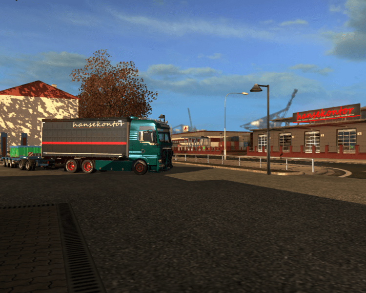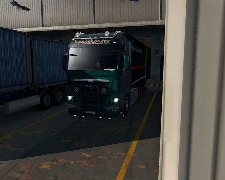 Ich fahre den Trailer zur Krananlage und setze danach den MAN an das zugewiesene Tor.