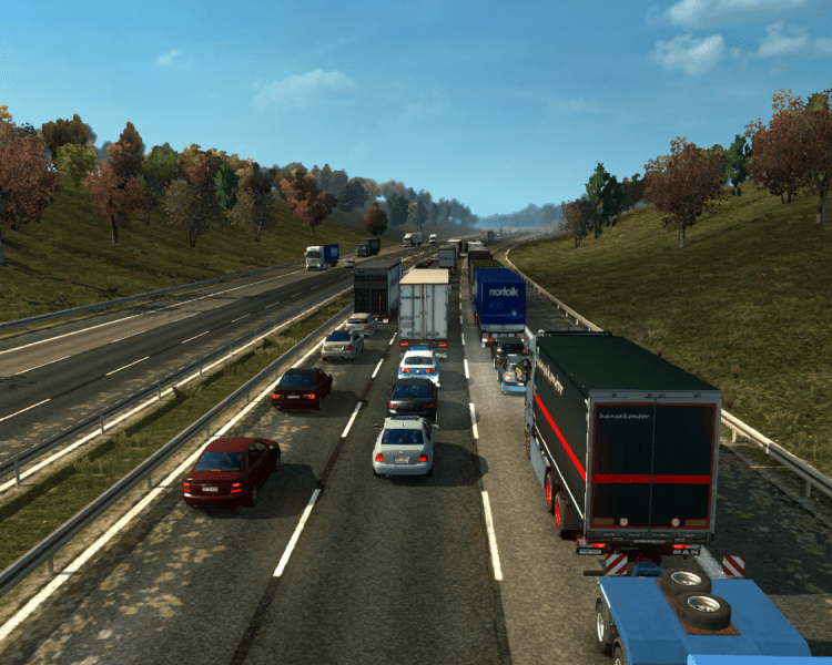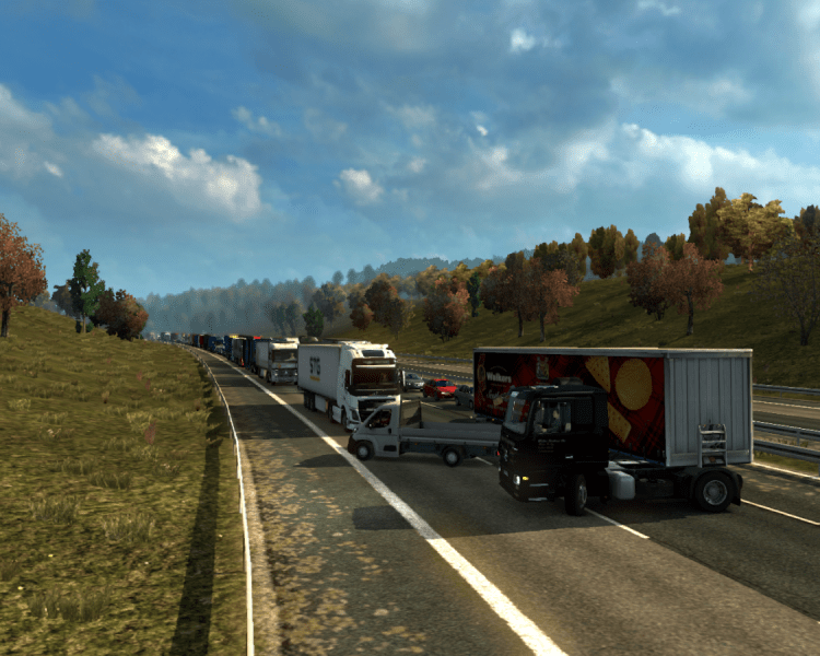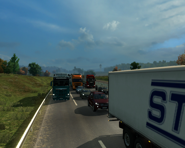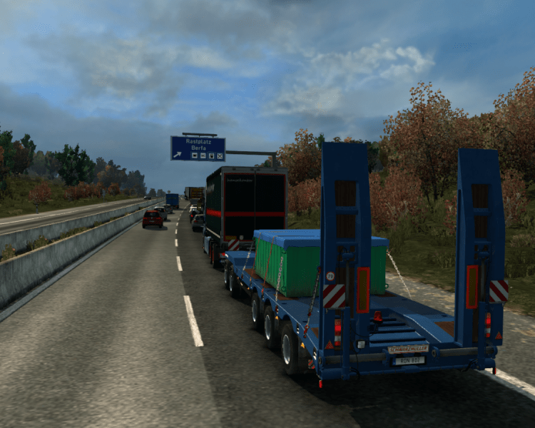 Langsam kommt die Blechlawine wieder ins rollen. Als ich auf die E20 wechsel spricht mich ein Kollege über Funk an: „Der Kollege mit dem Tieflader ‚RON 802‘ am Haken… Bei deinem Trailer hat sich gerade das Rücklichtbirnchen rechts verabschiedet.“ „Danke für die Info, ich bin in Malmö gleich am Platz und kümmer mich drum.“ „Gerne.“ Der Kollege bleibt auf der Strecke bis Malmö hinter mir. Als ich die Abfahrt in Richtung meiner Niederlassung nehme zieht er mit einem kurzem Hupen an mir vorbei, weiter in Richtung Trelleborg.