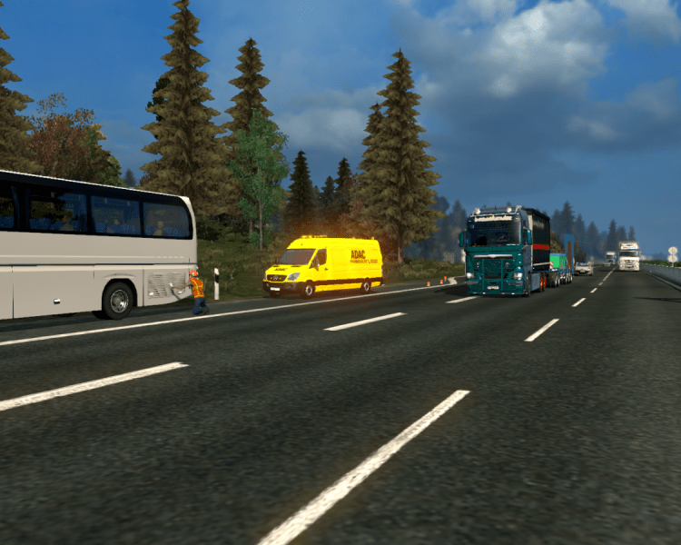 Auf der A7 in Richtung Süden läuft der Verkehr. Plötzlich vermeldet das CB-Funk-Gerät ACHTUNG! Gefahrenstelle! Kurz darauf ist dann auch ein Pannendienstfahrzeug und ein liegen gebliebener Reisebus zu sehen. Die Warnung aus dem Funk kannte ich bisher zwar nur von Sicherungsfahrzeugen der Straßenmeistereien, aber auch beim Pannendienst ist so was nicht verkehrt.