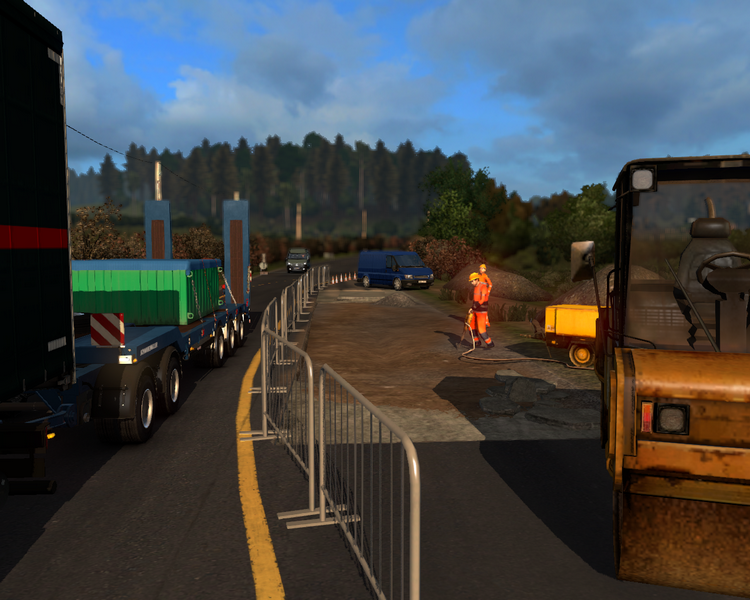 Um 06:30 Uhr klingelt mein Wecker. Ich darf die Sanitärräume der Maschinenbaufirma nutzen und bekomme anschließend sogar ein kostenfreies Frühstück in der Kantine. Um kurz nach 08:00 Uhr sitze ich mit einer Tasse Kaffee im Büro des Lagermeisters und warte auf meine Papiere. Als dieser rein kommt muss nur noch ein Stempel gesetzt werden. „So. Du kannst los. Gute Fahrt.“ „Danke.“ Ich setze den MAN an den Tieflader und mache meine Abfahrtskontrolle.