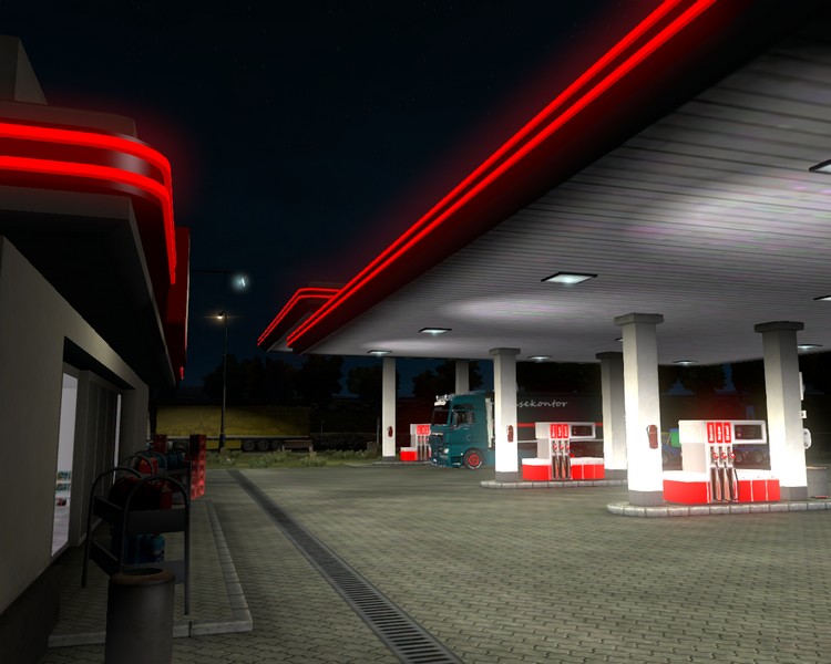 Um kurz nach 06:00 Uhr meldet sich der MAN, er sei durstig. Zu Recht – ich hatte in Deutschland nicht voll getankt. Ich fahre also an die nächste Tankstelle. Diesel für den Löwen, Kaffee für mich.
