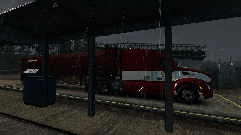Meistens fuhr ich sowieso deutlich mehr für CAT als mein Vertrag mich verpflichtete. Brian hatte noch keinen Auftrag für mich eingespeist, denn er arbeitete ja um 6 Uhr noch nicht. Also nahm ich nur schnell den Auftrag an und drückte die Sperrtaste für neue Aufträge. Danach ging ich wieder in den Bungalow zum Frühstücken, fegte noch mal durch, machte meine PTI und fuhr zu Coastline. Es regnete dermaßen stark, dass ich beim Aufsatteln und auf dem Weg vom Waagenhäuschen zum Truck durchnässt wurde.