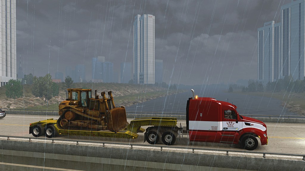 Der D6T war ein Bulldozer und nach dem 966M Radlader die zweitschwerste Fracht, die ich mit meiner Zugmaschine transportieren durfte. Inzwischen war diese Gegend für mich Routine und ich begann mich zu fragen, wann Brian denn mal was anderes als Ostküste mit mir vorhaben würde. Immerhin war der letzte Schnee über Nacht geschmolzen, dafür gab es nun Montreal bei Regen.