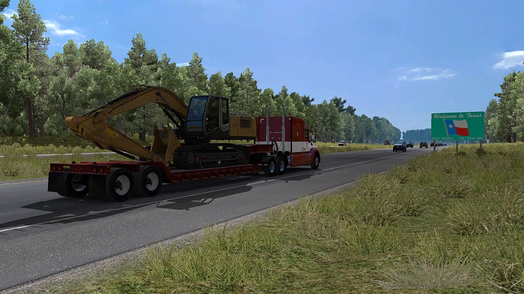 CAT war direkt um die Ecke und ich bekam meinen Raupenbagger gewohnt schnell. Er stand auf dem Trailer und mit Anmeldung, kurzer Abnahme zur Erfassung der Vorschäden und Aufsatteln war ich nach 11 Minuten mit dem Gerät unterwegs nach Texas. Es war eine der zahlreichen Kurzzeit-Leasingmaschinen, die zwischen einer Woche und bis zu einigen Monaten zur Überbrückung bei Kunden eingesetzt und dann an CAT Rental zurückgegeben wurden.