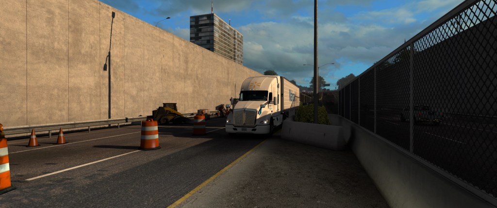 Weit kam ich erstmal aber nicht. Ich stand nämlich erstmal eine geschlagene Viertelstunde an der Ausfahrt der Tankstelle auf den Navajo Boulevard. Der Berufsverkehr war in vollem Gange und auch von den sogenannten Kollegen ließ mich keiner auf die Straße. Na besten Dank auch. Wo war bloß die früher immer so hochgelobte Solidarität unter den Truckdrivern geblieben?