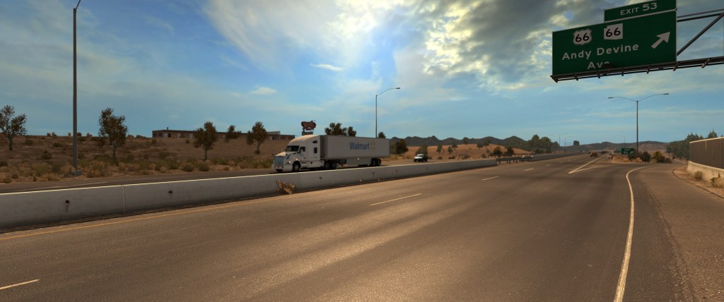 145 Meilen und im Nachmittagsverkehr drei Stunden später verließ ich dann an der Ausfahrt 53, Andy Devine Avenue, die Interstate nochmal. Ich wollte an der bekannten Chevron in Kingman die Tanks nochmal mit günstigerem Arizona Diesel füllen, bevor es wieder zurück nach Kalifornien ging. Auch hier hatte ich dann wieder kurz die Historic Route 66 unter den Rädern.