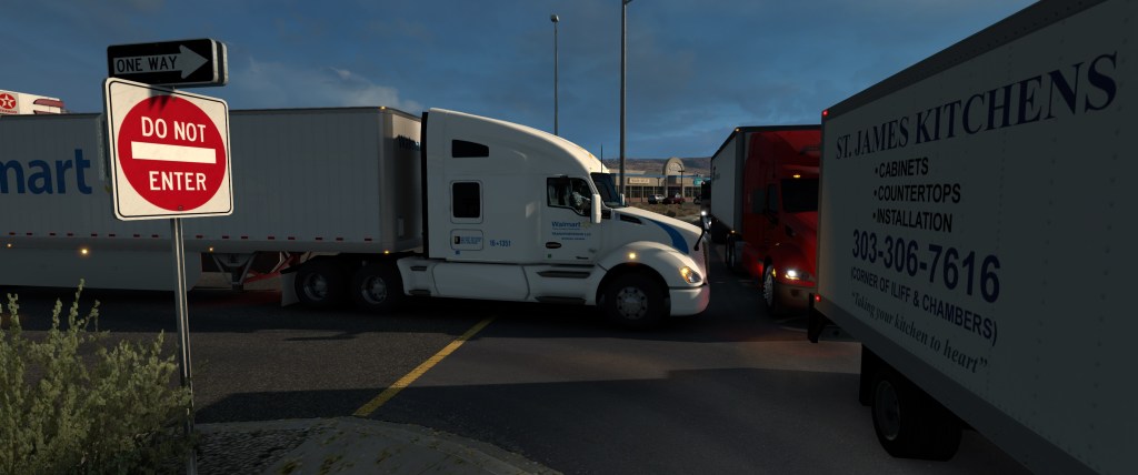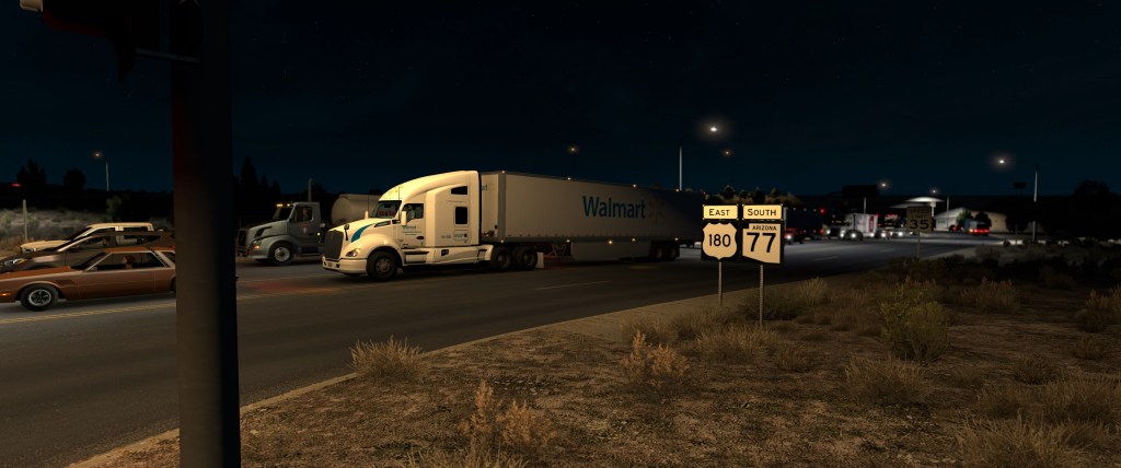 Das Walmart Zentrallager in Flagstaff war quasi um die Ecke. Die E Cherry Avenue, an der es lag, war nur zwei Blocks weiter nördlich. Dort angekommen, sattelte ich den Trailer auf und erledigte die PTI. Anschließend machte ich das Dock frei, stellte den Lastzug an die Seite und die Systeme auf Pause.