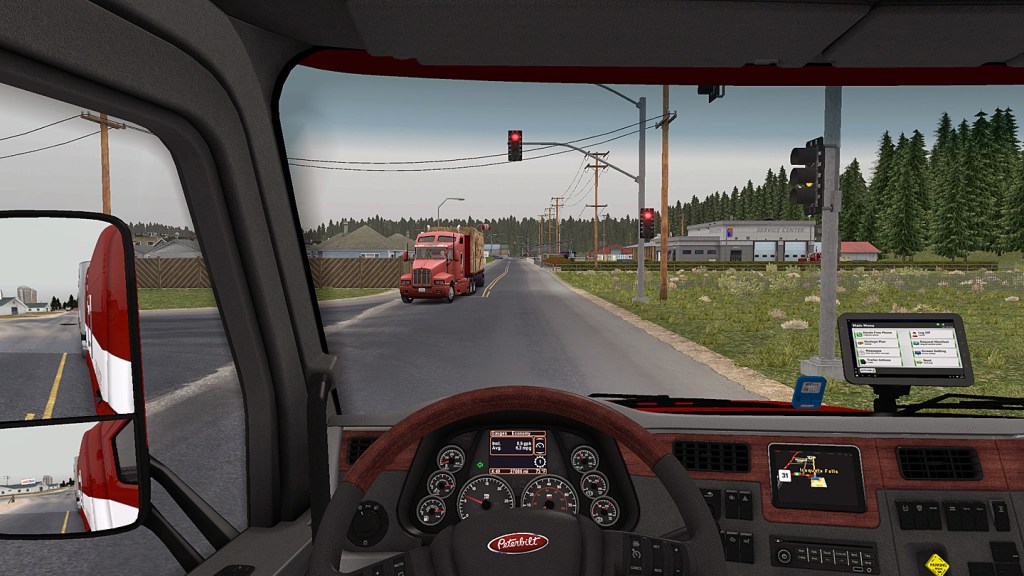 Leider hatte ich gestern in den USA vergessen, mal auf die Tankanzeige zu schauen. Deshalb durfte sich dann PetroCanada in der Mittagspause über einige Dollar für das kanadatypisch teure Diesel freuen. Trotz einer Baustelle kam ich dann am Nachmittag in Iroquois Falls an und musste noch einen Kollegen mit einem gewöhnungsbedürftig lackierten Kenworth T600 an der Ampel vorlassen, der auch zu Caterpillar wollte.