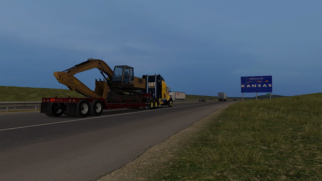 Hier im Mittleren Westen waren die Straßen relativ leer und relativ gerade. Also gab es wieder keine besonderen Ereignisse, bis ich kurz vorm Tagesziel erneut eine Staatsgrenze mit dem Truck überquerte, die ich bisher nur mit dem Oldsmobile Kombi passiert hatte. Allerdings war es ein Transitstaat, ein Ladevorgang würde mir auch weiter fehlen.