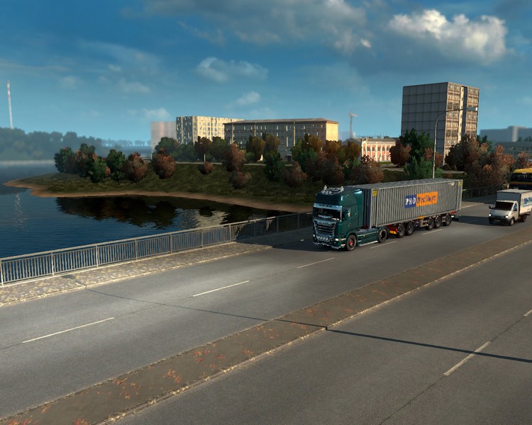 Ich hatte mich am Abend im Gewerbegebiet in eine ruhige Sackgasse gestellt, sodass ich heute in Ruhe ausschlafen konnte. Nach dem Frühstück mache ich noch einen kleinen Spaziergang ans Ufer der Upa. Als ich wieder am Scania zurück bin führe ich meine Abfahrtskontrolle durch und mache mich auf den Weg nach Efremof.
