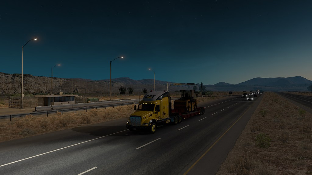 3:15 PM verließ ich die Interstate. Die Baustelle lag natürlich falsch rum, also musste ich, um Platz fürs Absatteln zu haben, einen Donut auf die Straße ziehen. Ich machte die Maschinenabnahme, übergab die Dokumente und fuhr los, weiter in Richtung San Rafael. Zwar durfte ich den Truck nicht auf dem CAT-Workshop abstellen, aber auf der Fläche davor.