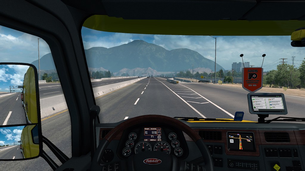 Nach der Weiterfahrt erinnerte mich eine Werbetafel an meinen inneren Konflikt. Ursprünglich hatte ich ja davon geträumt, eine große Transportfirma zu haben. Und so ganz glücklich war ich mit diesem eher kleinen Truck auch nicht. Er war größer als ein W900 oder 389, aber das war’s dann schon. Eigentlich wollte ich aber einen anderen Truck.