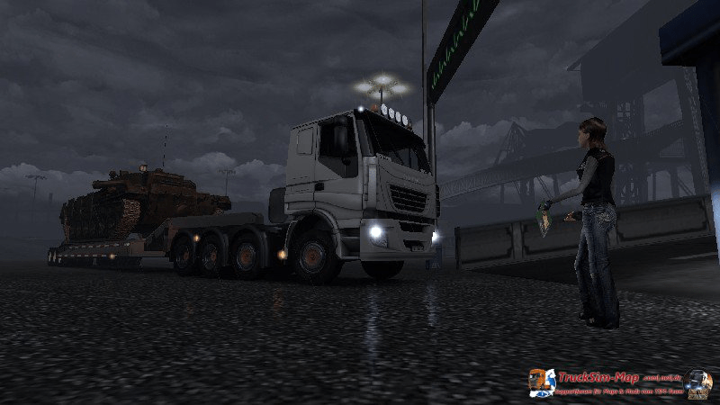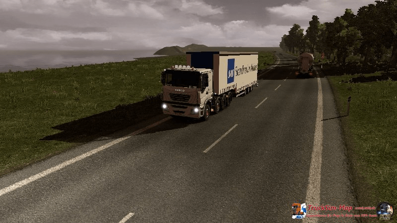 Unterwegs stellte ich fest, dass mein Iveco damit fast genauso viele Probleme hatte wie mit einem wesentlich schwereren Trailer. Obwohl die Strecke recht eben war, hatte ich Probleme Geschwindigkeit drauf zu kriegen. Der hohe Jumbotrailer und die flache Zugmaschine, das war einfach aerodynamisch suboptimal.