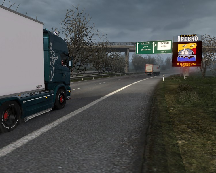 Noch in Örebro muss ich auf einmal voll in die Eisen steigen – ein MAN von ‚Malcolm‘ zieht plötzlich ohne zu blinken auf die linke Spur. Zum Glück komme ich rechtzeitig zum stehen.