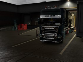 Als wir mit dem Frühstück fertig sind holt Danny den Gabelstapler aus der Halle, damit wir die Paletten vom weißen Trailer abladen und auf den grünen Trailer umladen können. Danach stelle ich den Weißen hinter die Halle und hänge mir den anderen hinter den V8.