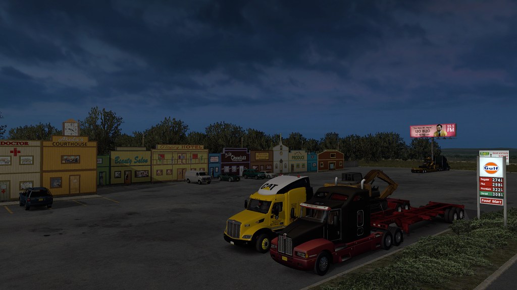 Direkt über die Grenze nach New Mexico war das aber auch vorbei und eine Hochebene erstreckte sich bis zum Horizont. Ein ereignisloser Tag, der so langweilig war, dass ich das Tanken in Texas vergaß, endete gegen 6 PM auf dem Bowlins Old West Trading Post, erst an der Zapfsäule und dann auf dem Parkplatz. Der Dieselpreis war hier immer noch okay, wenn man den Nordosten gewöhnt war.