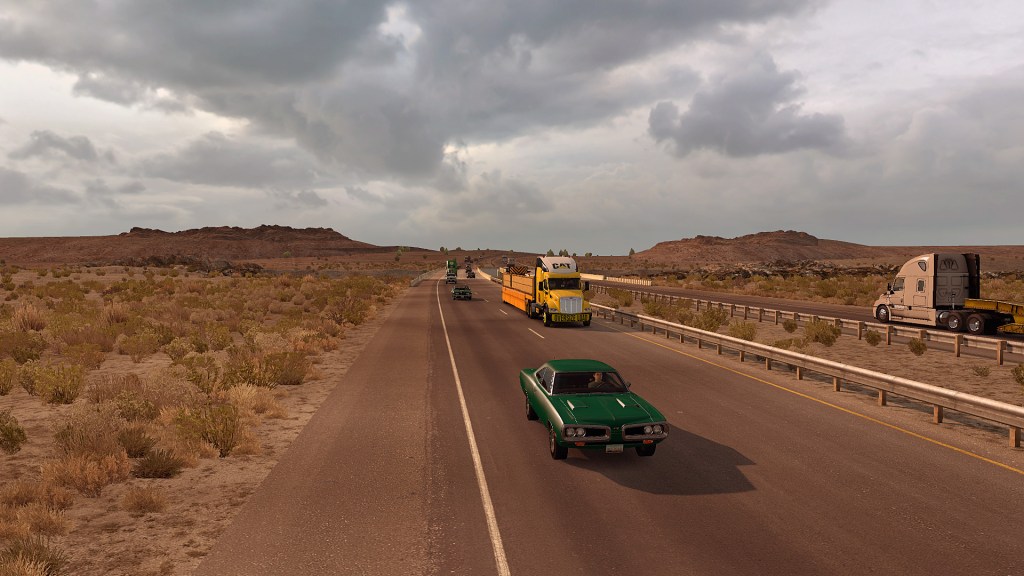 Ein Erlebnis für die Ohren waren zwei komplett identisch aufgemachte und in der gleichen Farbe lackierte 1970er Dodge Coronet, die mit ihren großen V8-Motoren bei 60 mph dahin rollten, so dass ich sie beide mit 10 mph Geschwindigkeitsüberschuss schön überholen konnte.