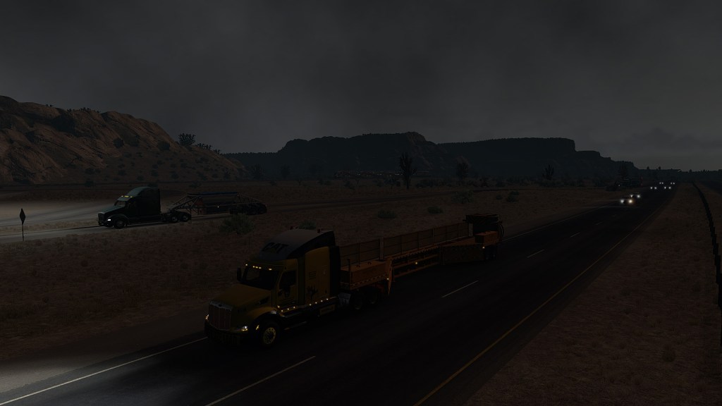 Die Wiegestation durfte ich mal wieder passieren. Eigentlich überraschte mich das, denn Sonderfahrzeuge wurden gerne rausgeholt. Das Schicksal ereilte dafür eine Schüttgutmulde, die waren wegen des Risikos sie zu überladen auch gerne gesehene Gäste. Apropos gerne gesehen, die durchaus beeindruckenden Felsformationen verschwanden langsam in der Dunkelheit.