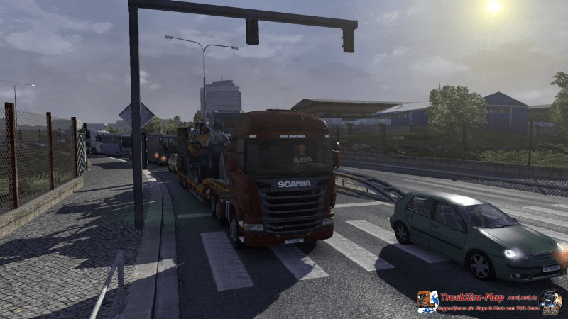 Die neue Fracht war auch gleichzeitig die vorerst letzte für meinen Iveco und mich. Schon vor einiger Zeit hatte ich einen zweiten LKW bestellt und jetzt endlich war die E-Mail gekommen, dass er fertig ist. Da die letzte Tour etwas besonderes sein sollte, hatte ich mir eine spezielle Fracht gesucht. Der Transport einer Diesellok von Osnabrück nach Amsterdam stand an. Auch der Zielort passte mir sehr gut in den Kram. Schließlich hatte ich in der niederländischen Hauptstadt ein Grundstück erworben und dort meine erste Zweigniederlassung eröffnet. Die Fahrt aus der Stadt heraus führte auf Grund der Gesamtlänge des Gespanns zu einigen kleinen Problemen.