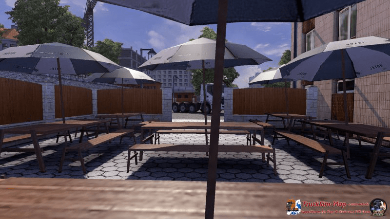 Pünktlich zum Mittag stellte ich den Trailer auf der mir zugewiesenen Position ab. Wieder ein Auftrag erledigt. Im Hotel angekommen aß ich erstmal ordentlich zu Mittag. Da es sonnig und warm war, setzte ich mich dafür auf die Hotelterrasse mit Blick auf meinen LKW.