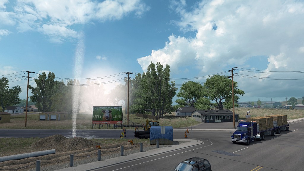 Eigentlich sollte man denken, dass nicht mal mehr 600 Meilen verbleibende Strecke eine gemütliche Tagesetappe sein dürften, aber das galt leider nur auf Interstates. Die Strecke von hier nach Elko bestand aber nur aus Single Lane Highways. Also sah ich zwei Dinge. Als erstes eine kleine Überschwemmung, weil in Burns ein Baggerfahrer eine Wasserleitung erwischt hatte.