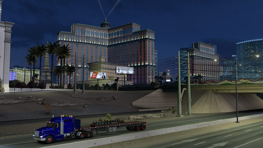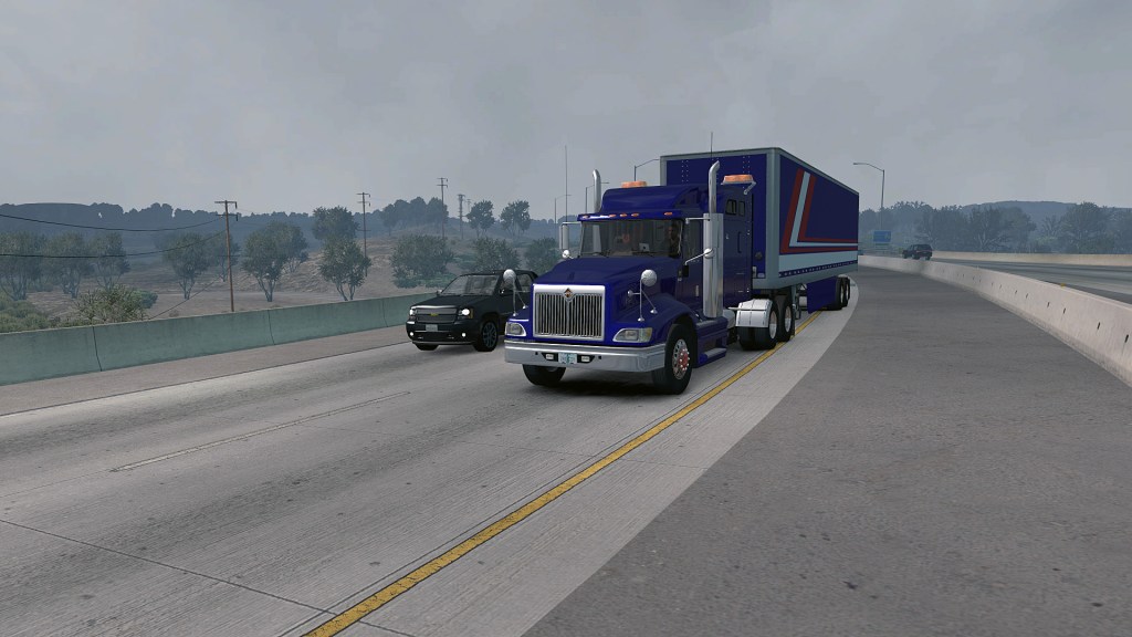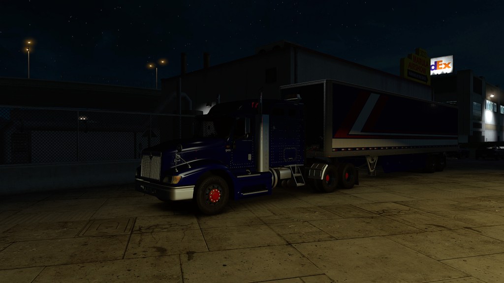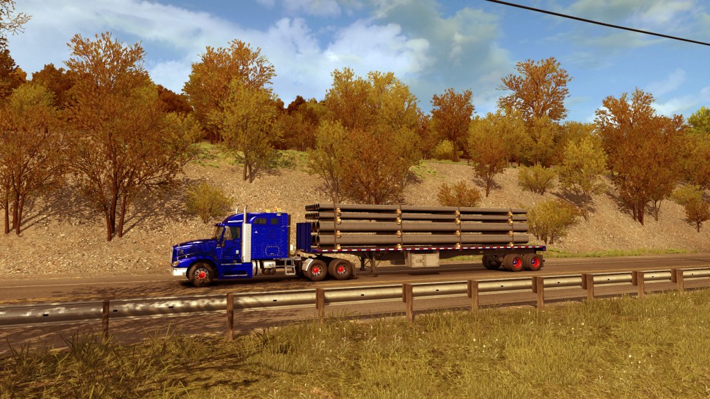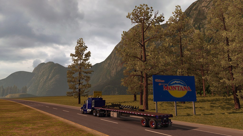 Der große Flatbed kam mir dann auch mal auf die Platte. Der hatte, nachdem die alten Felgen nichts mehr waren, auf Brians Wunsch von Isaac rot eloxierte Felgen, blaue Nabenkappen und weiße Radmuttern verpasst bekommen, die Farben der USA. Das passte nicht so wirklich zu Evans und meiner Zugmaschine mit gelber Deko, aber auch bei Casey waren mit dem neuen Truck schon die Farben der USA eingekehrt. Oregon war gestern, heute stand das ganze Land auf der Agenda.