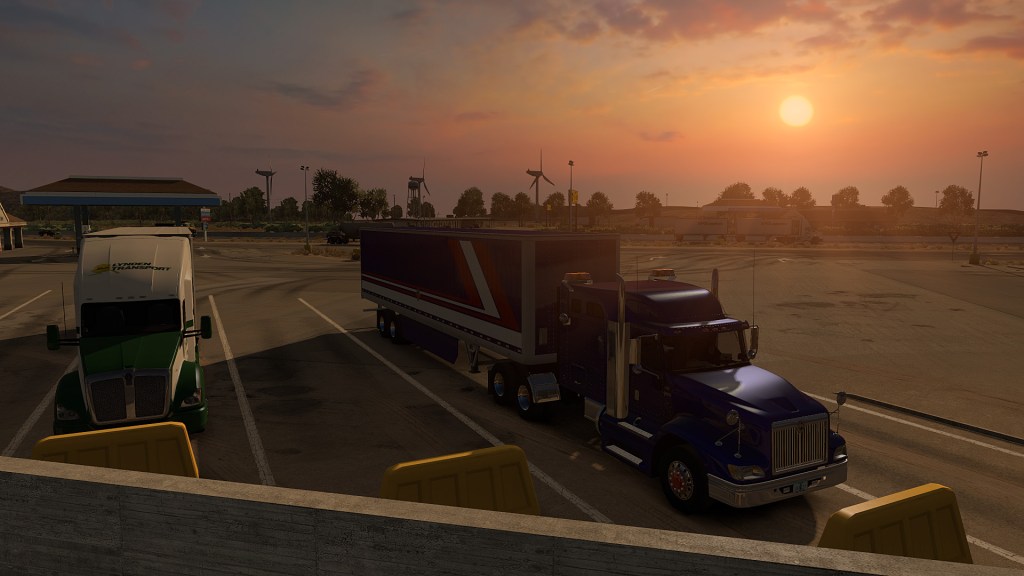 Am Pilot Travel Center in Lost Hills (CA) endete mein Tag im schönsten Abendrot. Ich machte ein Foto meines Trucks auf dem Parkplatz. Man musste in den sozialen Medien heutzutage ja was bieten, wenn man einmal angefangen hatte, sein Leben öffentlich für wildfremde Menschen zu dokumentieren.