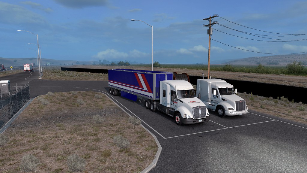Hier durfte ich trotz 8,000 lbs. unterm Limit und korrekten Achsen auch wieder mit den Papieren antraben. Allerdings gab es Wartezeit, da der Officer gerade noch die Ladungssicherung der Kabelrollen auf dem nebenan stehenden Peterbilt mit Tieflader kontrollierte.