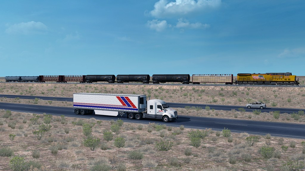 In Dalhart machte ich als letzte größere Stadt in Texas eine Tankpause und hielt auch noch mal zum Einkaufen von Lebensmitteln bei einem 7-Eleven. Anschließend trat ich ein Wettrennen gegen den Zug der Woche an, der die gleiche Abfahrtstelle wie ich gehabt haben könnte.
