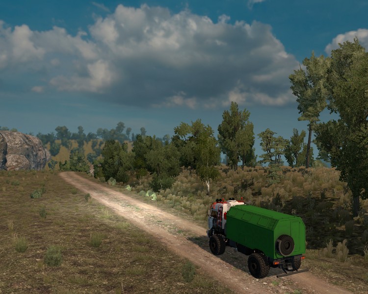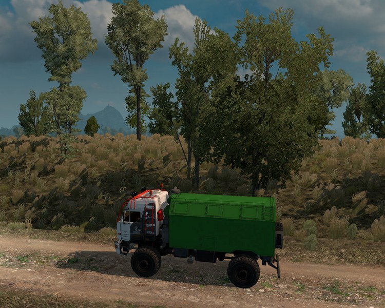 Während wir Anfangs noch auf den üblichen Straßen unterwegs waren führte uns der weitere Weg später über unbefestigte Routen. An einigen Stellen waren es Passstraßen auf denen uns kein anderes Fahrzeug hätte entgegen kommen dürfen. Der Kamaz mit seinem hoch liegendem Allradfahrwerk und den Ballonreifen war für diese Straßen der ideale Reisebegleiter. Der grüne Wohnkoffer ist mit allem ausgestattet was es für das autarke Reisen bedarf, wodurch uns möglich war die Fahrt ohne die Suche nach einem Campingplatz zu gestalten.