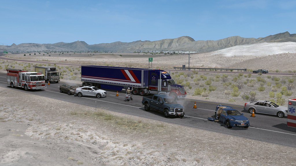 Kurz danach gab es einen kleinen Stau, denn scheinbar waren andere noch viel weniger bei der Sache als ich. Jedenfalls hatte erst mal ein Pickup einen PKW pulverisiert und der nachfolgende Cadillac hatte nicht viel Freude dran, rechtzeitig gebremst zu haben, nachdem der danach von einem Audi rücklings abgeschossen worden war.