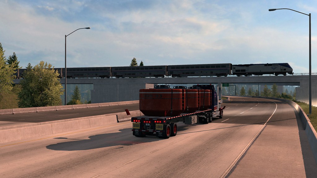 Der Washington Point of Entry zog mich natürlich dank auffälliger Kriegsbeflaggung raus, aber ließ mich mit 37,395 lb. gleich wieder raus. Zug der Woche wurde kurz darauf die Portland Section von Amtraks Empire Builder, der in der Anfahrt auf Spokane die Interstate auf einer Brücke überquerte.