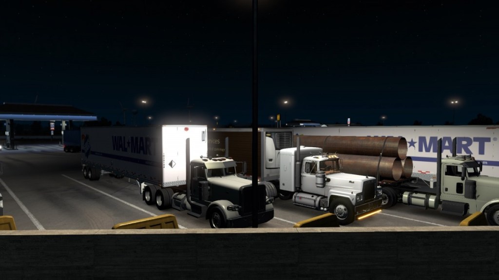 Wie erwartet, war alles in Ordnung. Mein Gewicht betrug gerade mal 68.748 lb. Ich hatte also noch reichlich Luft nach oben. Ich machte mich dann auch wieder auf den Weg. Es dauerte dann auch nur eine Viertelstunde, dann hatten wir den Rasthof erreicht. Der Kollege fuhr dann gleich auf den Parkplatz, wo er schon von einem weiteren Fahrer mit einem Walmart Trailer erwartet wurde. Ich hielt dann aber zuerst an der Tankstelle und steckte die Füllpistole in den Tank.