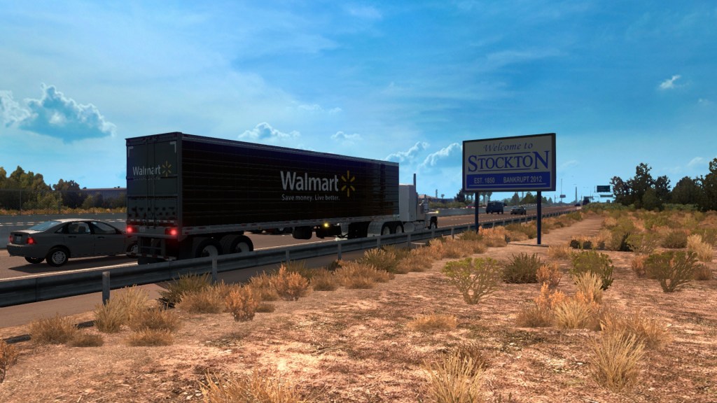 „Walmart Transportation, Schneider, guten Morgen.“ „Danny? Du bist schon da? Es ist doch noch keine Sechs.“ „Hallo Marc. Wir sind gerade bei der Übergabe. Was kann ich für dich tun?“ „Ich habe gerade beim Außenlager in Fresno abgesattelt. Hier hat man wohl keinen Anschluss für mich. Ich wollte wissen, was ich nun machen soll.“ „Moment… …du fährst jetzt nach Fresno zum Zentrallager. Dort bekommst du eine Ladung nach Sacramento.“ „In Ordnung. Dann fahre ich da mal rüber. Bis gleich.“ „Bis gleich.“ Wir beendeten das Gespräch und ich machte mich mit der Zugmaschine auf den Weg nach Fresno. Das war vom Außenlager dann auch schon wieder ein ganzes Stück. Ich brauchte dann auch eine halbe Stunde dafür.
