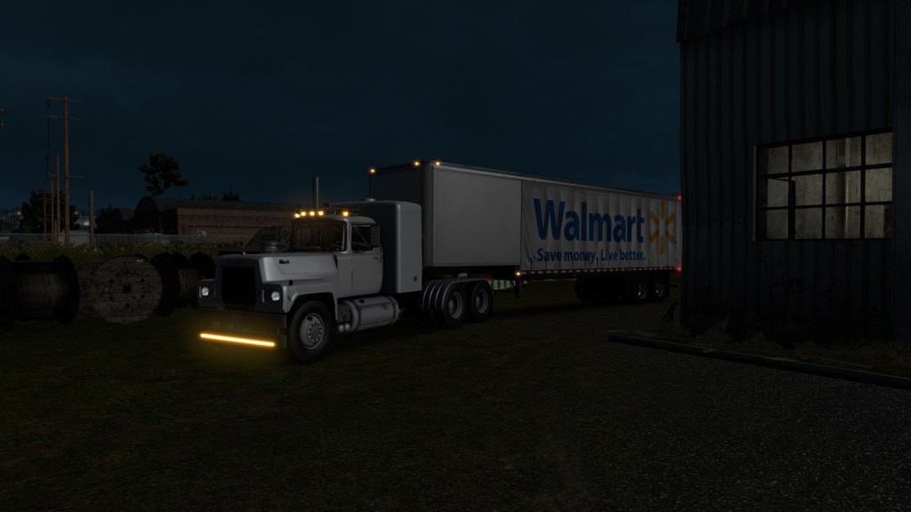 Etwa eine Viertelstunde später war ich dann am Supermarkt angekommen. Ich hatte dann gerade den Truck in der Einfahrt abgestellt, da kam dann auch schon der Nachtwächter um die Ecke. Er hatte dann auch die Papiere für den anderen Trailer gleich mitgebracht. Keine Ahnung, ob Charlie hier eben angerufen hatte. Ich sollte den Pup dann vor dem Freilager abstellen. Dabei merkte ich dann, dass man zwar erheblich wendiger mit dem kurzen Trailer war, andererseits lief einem der Trailer aber auch recht schnell weg. Man musste schon sehr gefühlvoll mit dem Lenkrad sein.